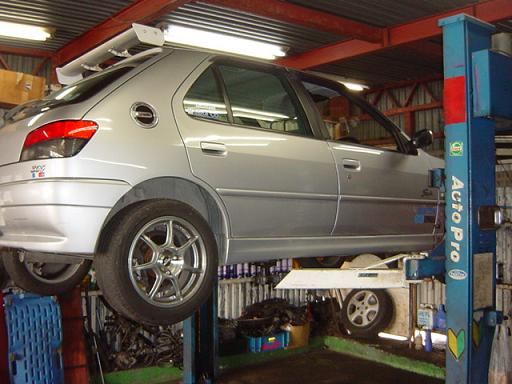 以前に当社オリジナルマフラーを製作した206XS君のリヤマフラー交換です。