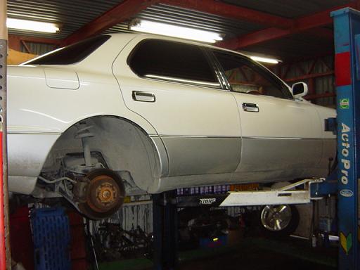 前後ディスクローターを取り替えてボディーの強度を出す為にフロントロアバーとリヤピラーバーを取り付けしました。