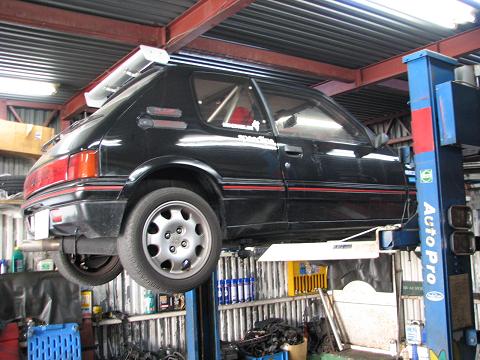 去年のくれにクラッチワイヤー切れ修理をした205GTI君がまた切れそうという事で入庫しました。