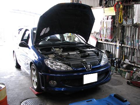 明日のサーキット走行に備えてエンジンオイルの交換でご来店頂きました206チャンプ号です。