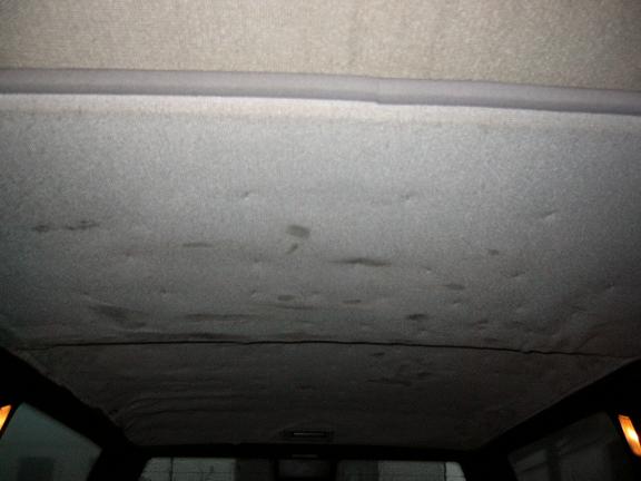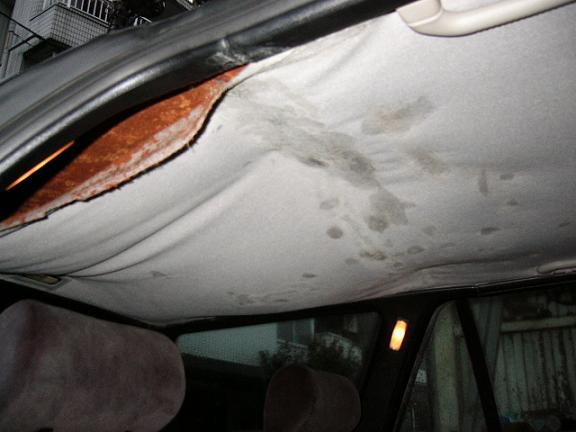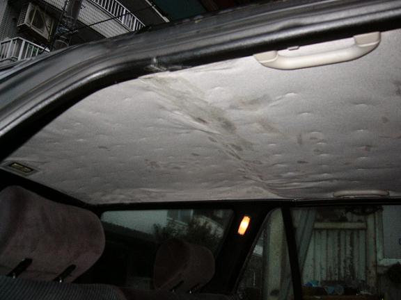 すでに整備は全て済んでいますが納税証明が届かず継続検査にいけません(今日届きましたありがとうございます)この時間を利用して剥がれてしまっている天張りをホッチキスを使って応急処置をします。