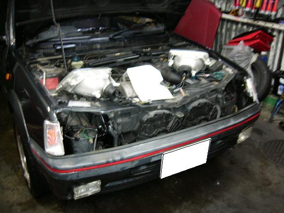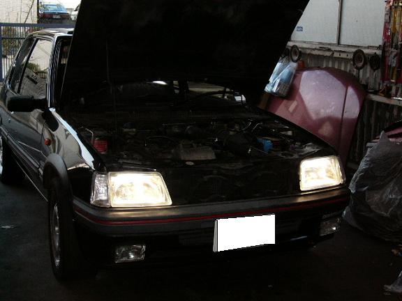 鈑金が終わった205GTI君にHIDを取り付けます。