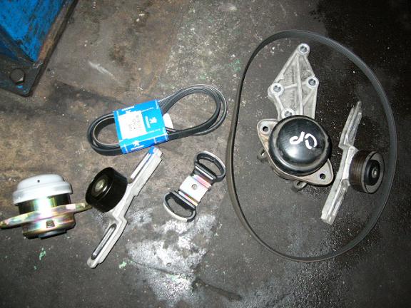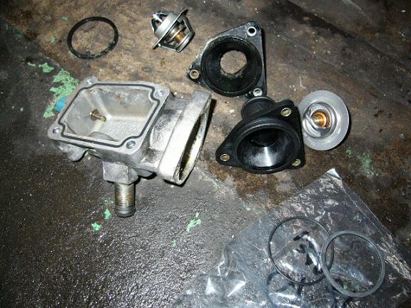 タイミングベルトと一緒にドライブベルトとテンションローラー、サーモスタット&ハウジングガスケットの取り替えと進めていきます。
