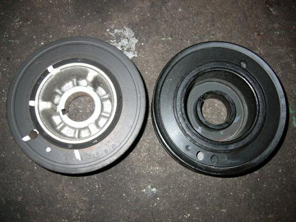 ダンパーがボロボロになってしまっているクランクプーリー、フロントパット&ローターと燃料漏れのホースを取り替えて作業終了です!!