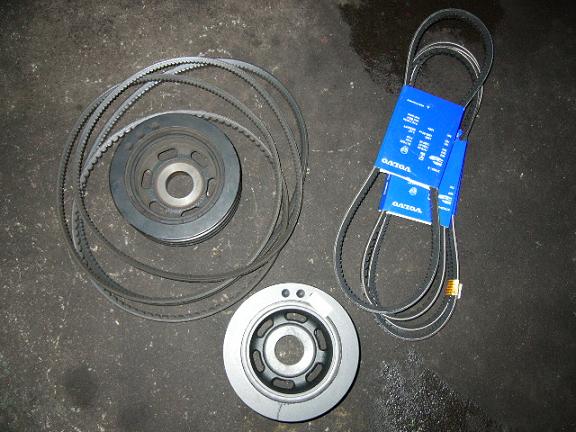 ベルト全部とクランクプーリー、前後パットとリヤディスクローターのお取替えです。