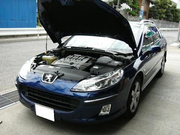 点検&ipodアダプターの取り付けでお預かりしています407SW君の最後の作業ボンネットのチリあわせです。