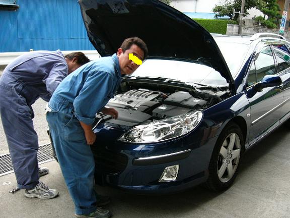 本日車検でお預かりしました406ブレーク君の車検点検&お見積もりに取り掛かります。
