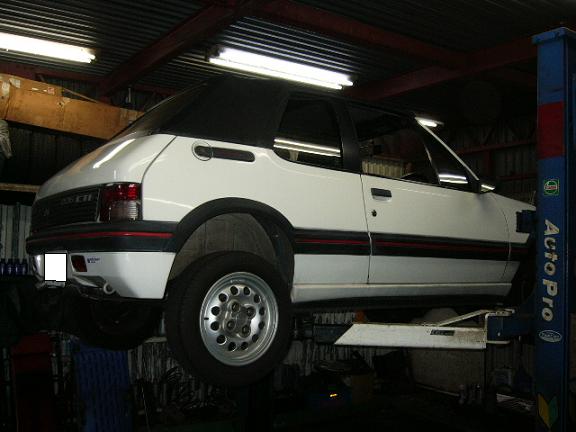 本日車検でお預かりしました205CTI君の点検&お見積りに取り掛かります。