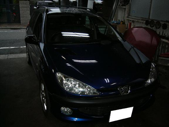 ステレオ修理とエンジンオイルの交換でお預かりしています206SW君のい作業に取り掛かります。