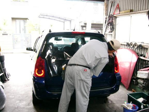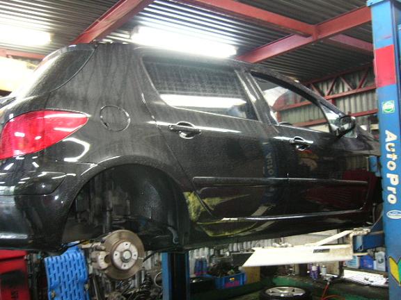 12ヵ月点検と鈑金塗装でお預かりしました307XSI君の点検整備に取り掛かります。