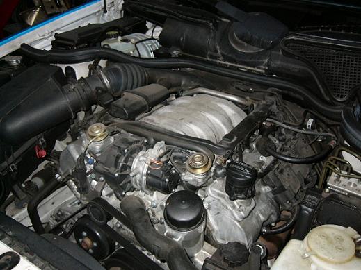 昨日の続きの作業E320君の車検整備に取り掛かります。