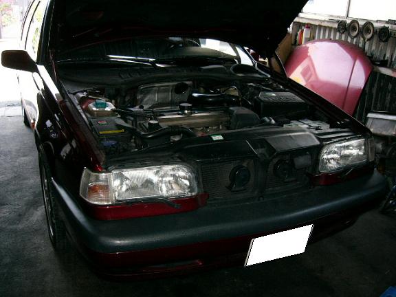 クランクリヤシール交換の為お預かりしていたボルボ850君の修理で最後の作業漏れチェックをしています。