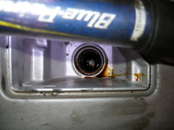 点検中ですがいろいろ悪いところがあるようです、プラグホールにプラグの頭しか見えない位オイルがたまっています!