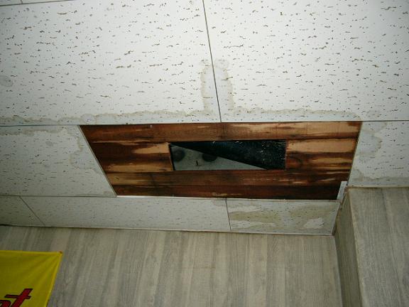 天井から水が降ってきました、水道管が水漏れを起こしてポタポタと下に置いてあった部品やらヒーターやらを水浸しにしてしまいました。