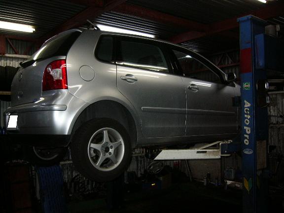 本日車検でお預かりしたワーゲンポロ君の車検点検&お見積りに取り掛かります。