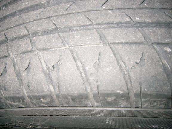 タイヤもスリップサインを通り越し無くなったブロックの一部が切れています、こうなる前にお取り替えしましょう!!