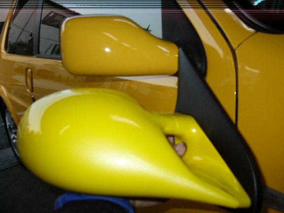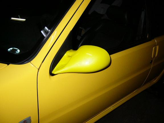 同色(黄色)のスタイリッシュミラーを取り付けましたが運転席側が見づらいようです、今度対策しますので少々お待ち下さい。