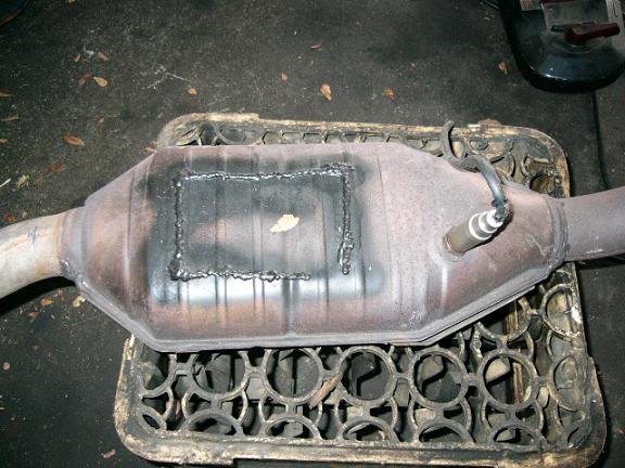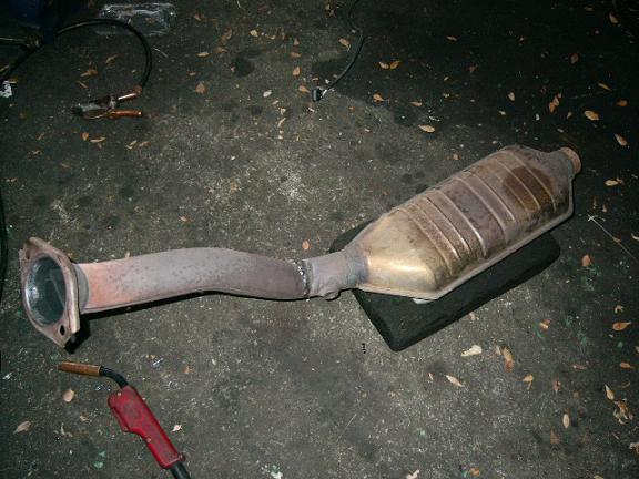 すかすかの触媒を外してみたらあらビックリ!穴を開けて中の触媒部分を取り除いてあります、直管になっていました。おまけにO2センサーは死んじゃってますし!