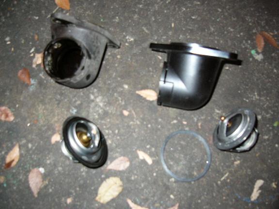 エンジンマウント、ブレーキホース、サーモスタットと作業を進めます。
